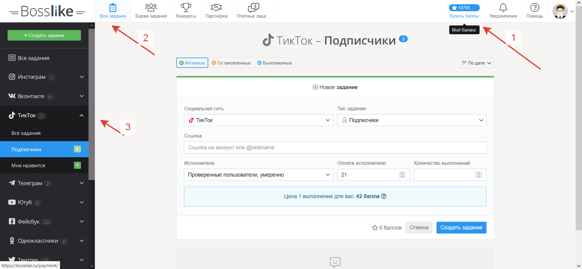 Как говорилось ранее, здесь можно зарабатывать, выполняя простые действия, или заниматься продвижением своих аккаунтов в социальной сети TikTok.