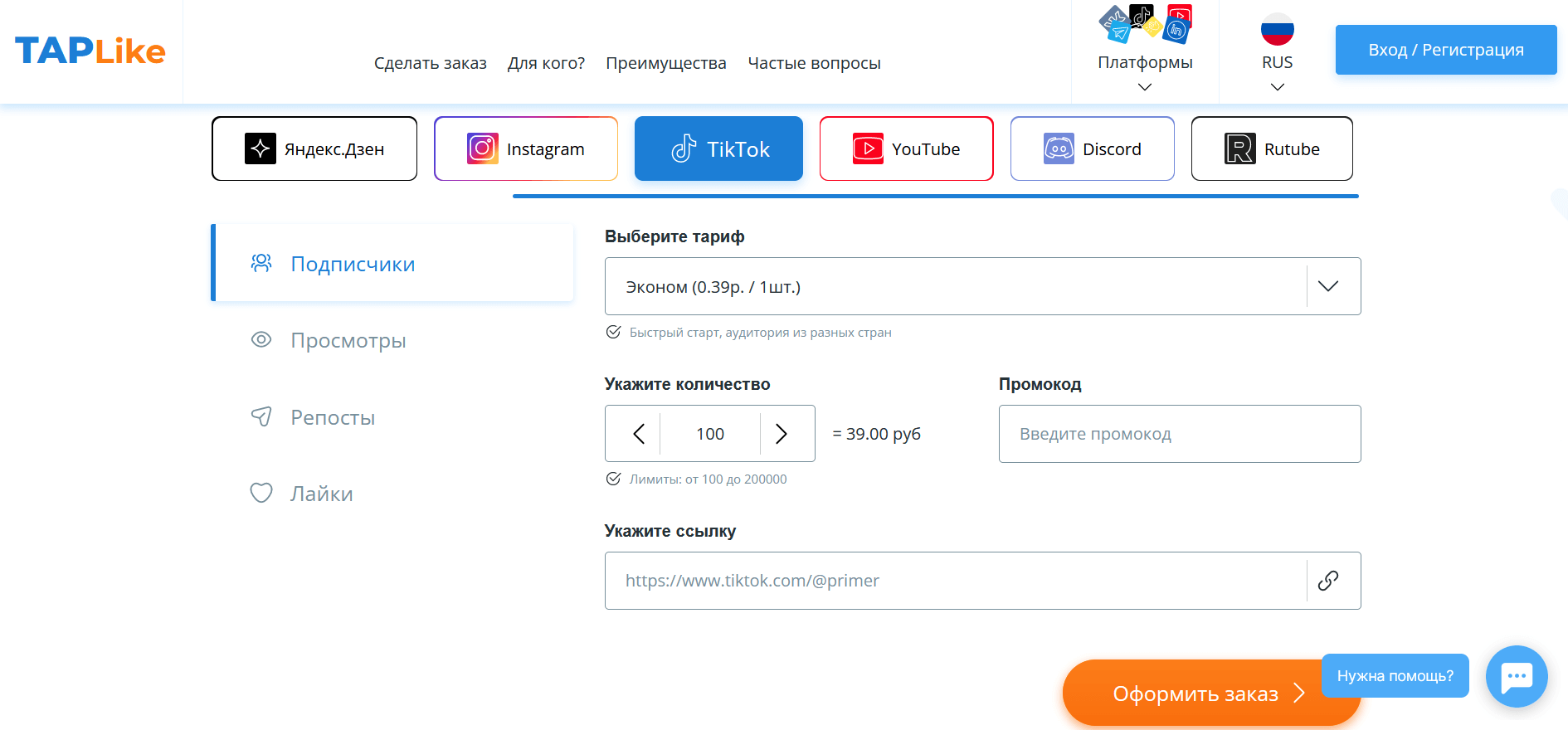 В этом молодом сервисе накрутка подписчиков для Тик Тока идет за счет российских аккаунтов
