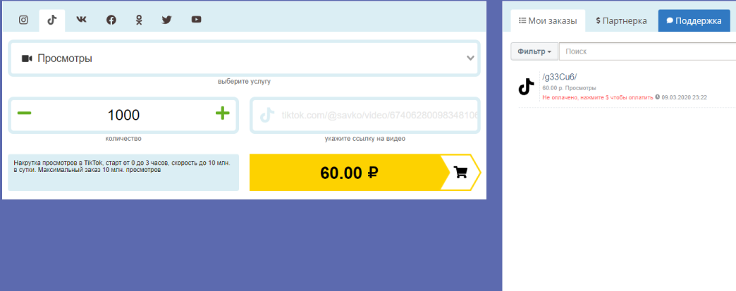 Платная накрутка хороша тем, что она быстрая. Чтобы накрутить фолловеров, достаточно вставить ссылку на профиль и закинуть на счет средства. Вы можете воспользоваться следующими 10 сайтами для накрутки Тик-Ток.
