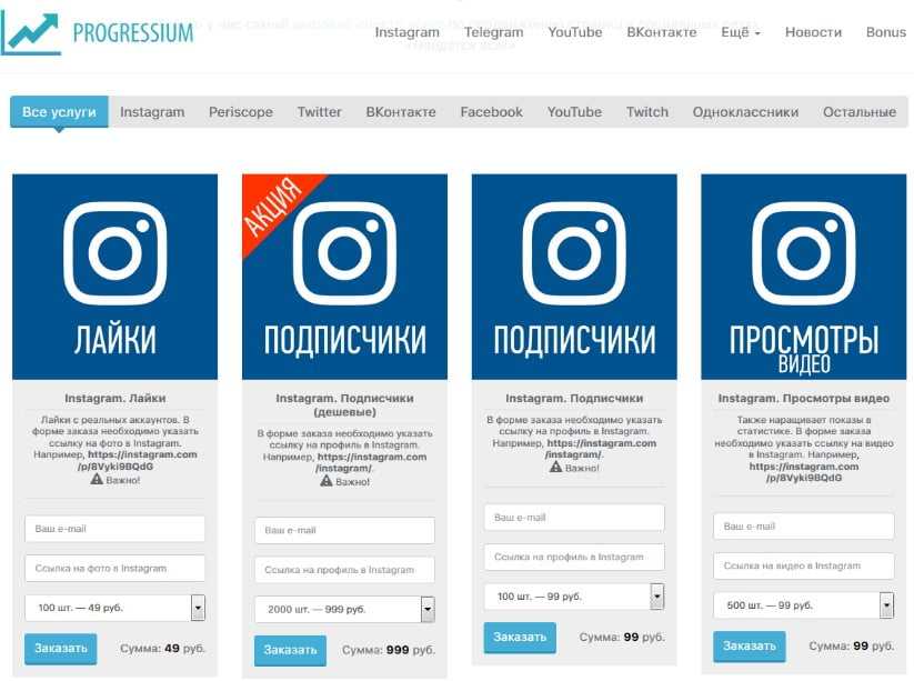 - по всем площадкам можно отыскать определенный список услуг, а именно подписки, комменты, «сердечки», просмотры историй, каталоги и прочее);