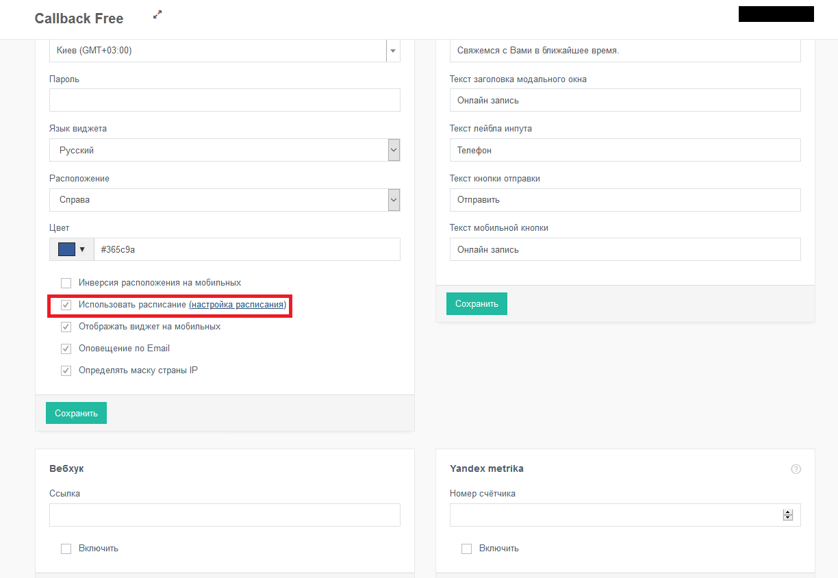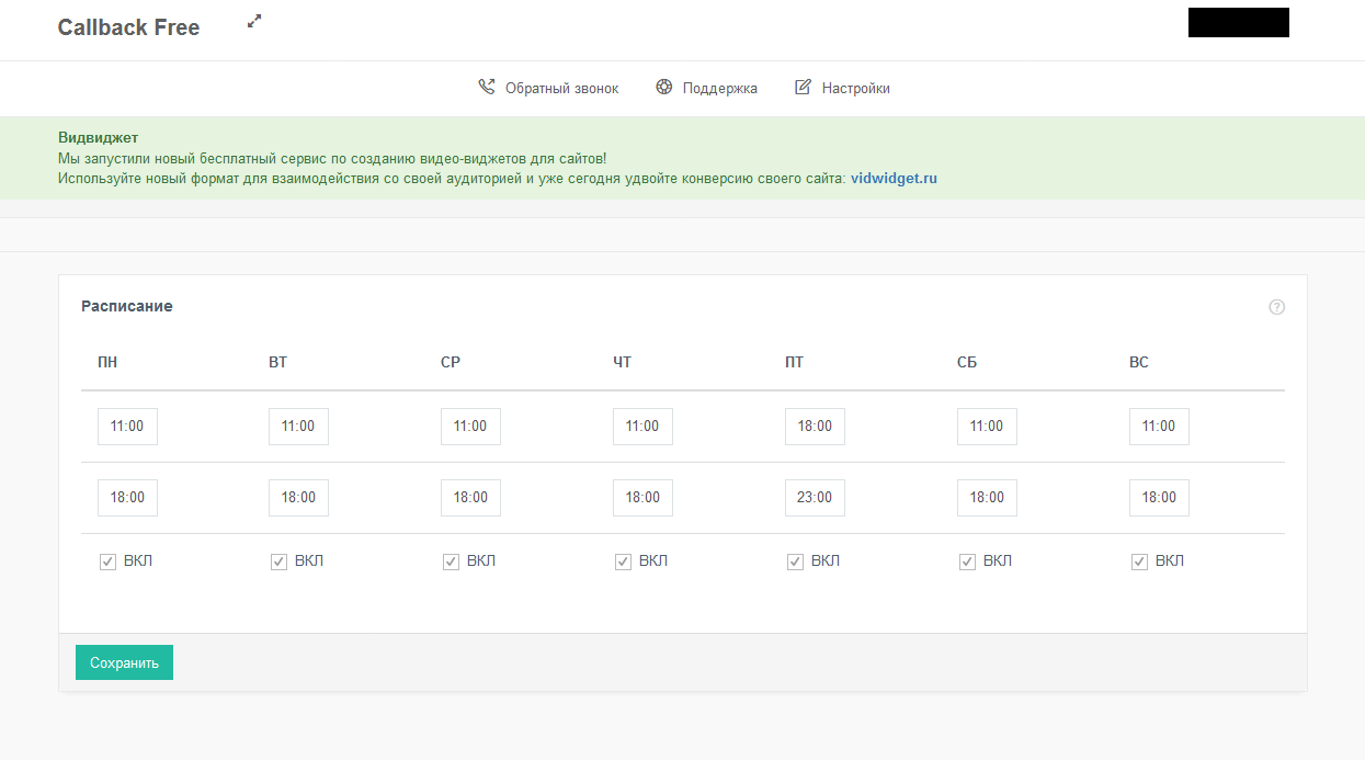 Виджет можно настроить так, чтобы он не отображался в определенные дни и / или часы. Это очень удобно. Таким образом, если у вас выходной, виджет можно настроить на автоматическое скрытие в этот день. Либо, если вы, не хотите получать заказ об обратном звонке в 6-ть утра, можно настроить время работы и виджет, будет появляться на сайте, только по вашему режиму работы. У меня на одном из сайтов, клиенты несмотря на график работы с 11 утра, который был указан в шапке сайта, постоянно заказывали обратный звонок в 8, а бывало и в 7 утра. Чтобы решить эту проблему, просто настроил отображение виджета на сайте с 11 утра.