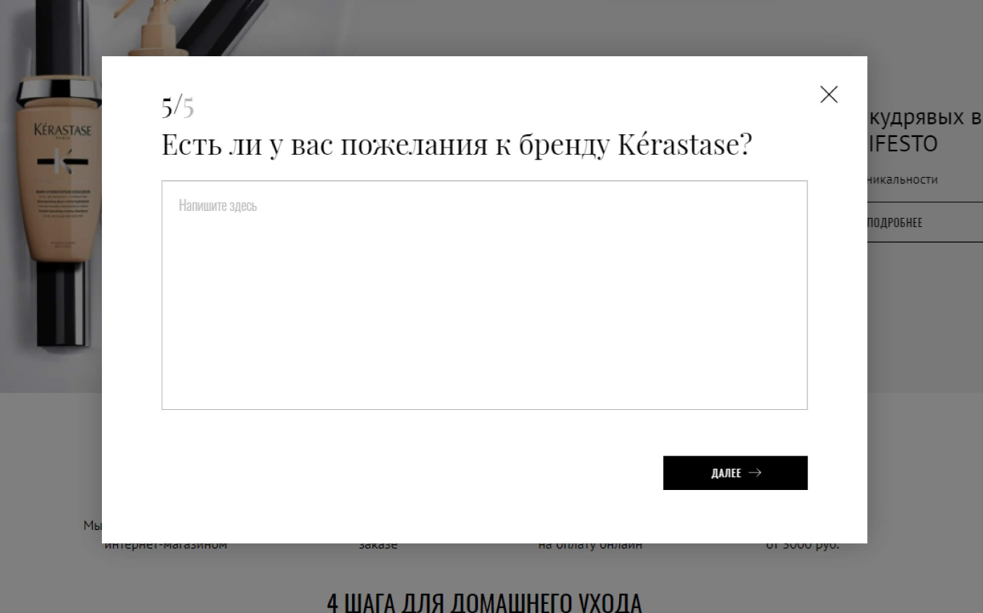 Виджет опроса на сайте kerastase.ru. Шаг 4