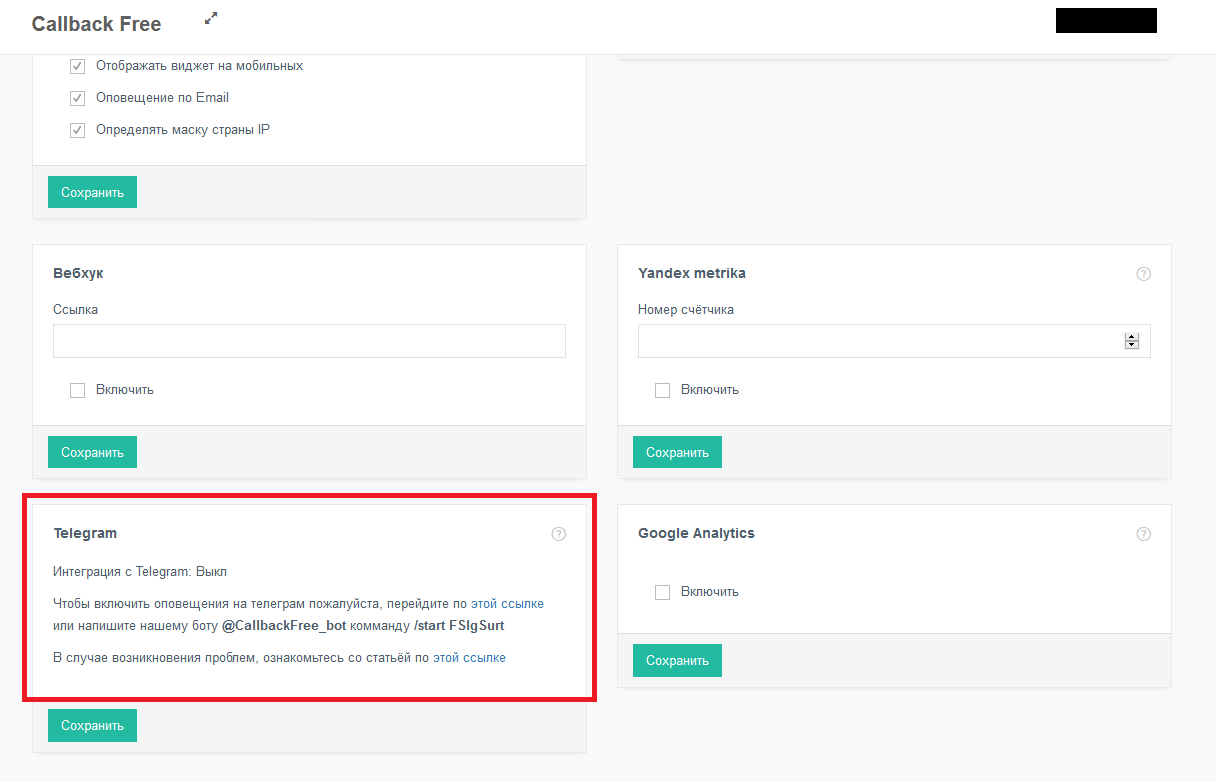 Есть возможность добавить Telegram бота и мгновенно получать уведомления в Telegram о новых заказах обратного звонка.