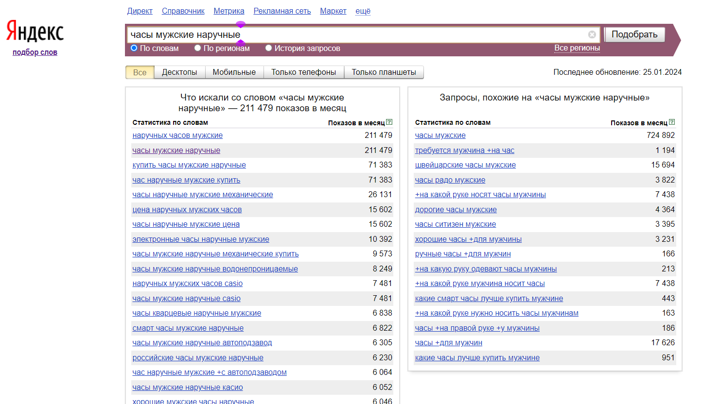Кроме того, вы можете использовать Яндекс Вордстат. Для этого в строке поиска введите подходящее ключевое слово. Вы увидите результаты, расположенные в порядке убывания частотности запросов. Программа собирает статистику, которая необходима для СЕО оптимизации карточек. Алгоритмы поисковиков автоматически индексируют страницы различных торговых площадок.