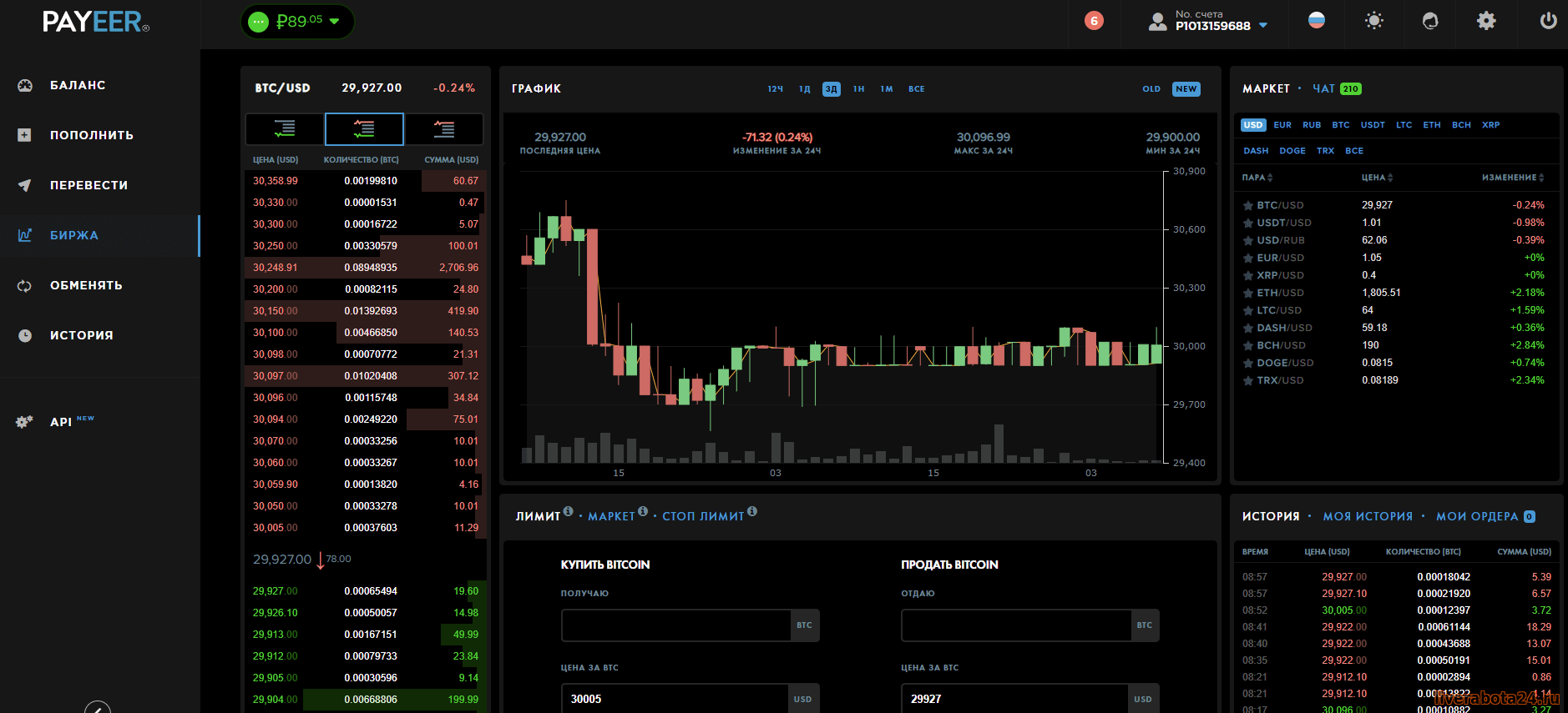В 2018 году заработала криптовалютная биржа Payeer Exchange. С ее помощью можно покупать/продавать криптовалюту, обменивать деньги между счетами пользователей системы по курсу, самостоятельно установленному в заявке.