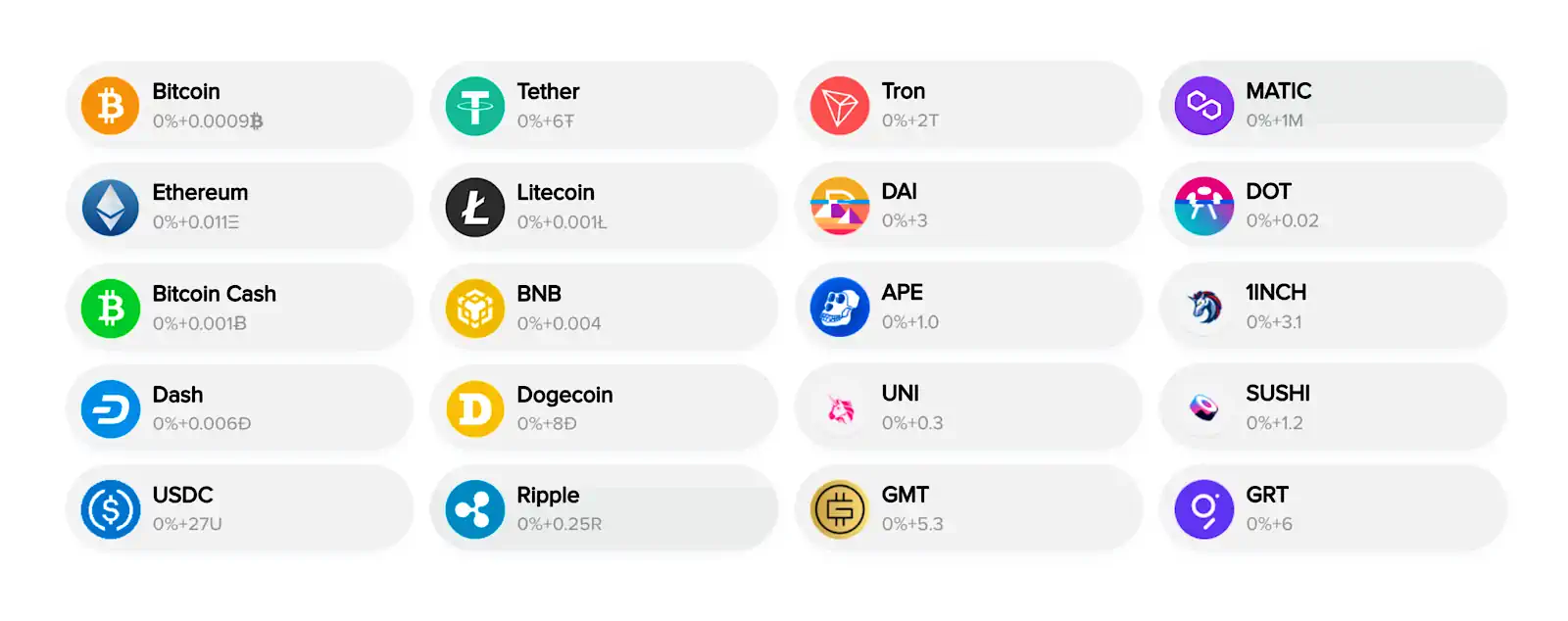 - Перечень валют, в которых можно открыть кошелек и совершать транзакции.