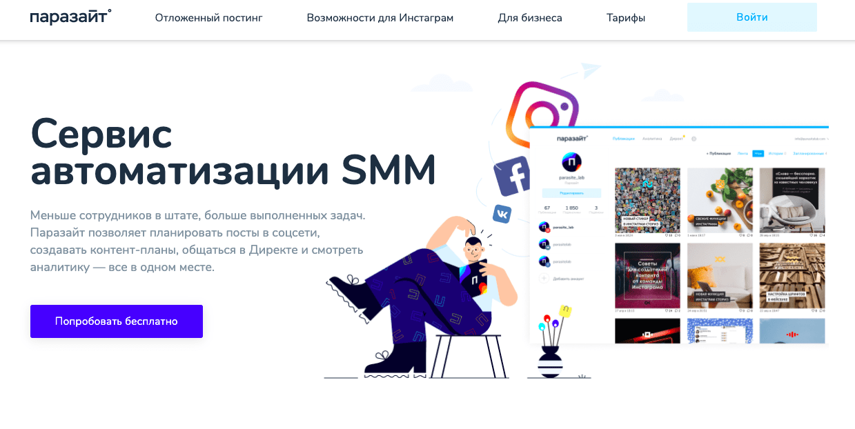 Давайте сделаем отложенные публикации в Инстаграм. Для этого воспользуемся сервисом Паразайт.
