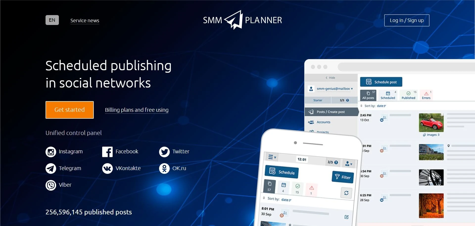 Сервис предоставляет автопостинг в различных соцсетях и мессенджерах: Инстаграм, ВКонтакте, Телеграм, Одноклассники и др.