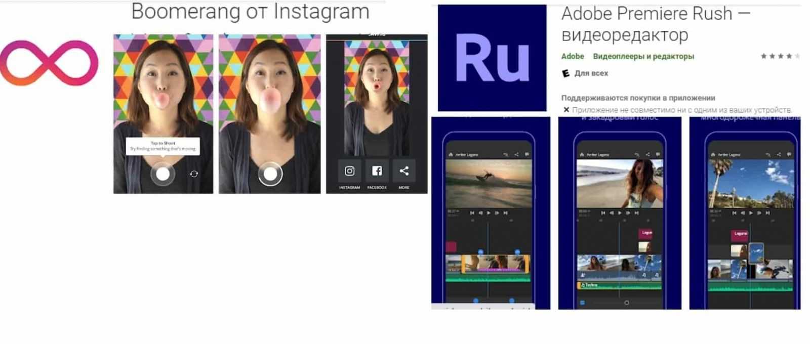 С помощью приложения Boomerang можно создавать короткие видео с объектами в движении, монтировать клипы, применять фильтры, добавлять наклейки. Софт разработан Instagram, поэтому поддерживается загрузка клипов в ленту социальной сети или Stories прямо из редактора. Boomerang бесплатно доступен в App Store и Google Play.
