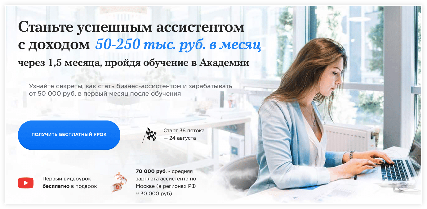Для целевой страницы информационного продукта призыв к действию будет другим: зарегистрироваться на вебинар, получить чек-лист, узнать больше, купить билет. Как правило, на целевых страницах используется два или три, а иногда и один повторяющийся призыв к действию при прокрутке страницы.