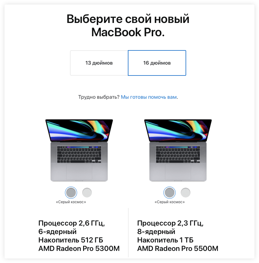 Apple предлагает два CTA подряд под разные запросы. Призывы к действию здесь не в виде кнопки и длиннее стандартных в одно-два слова, но выполняют свою функцию.