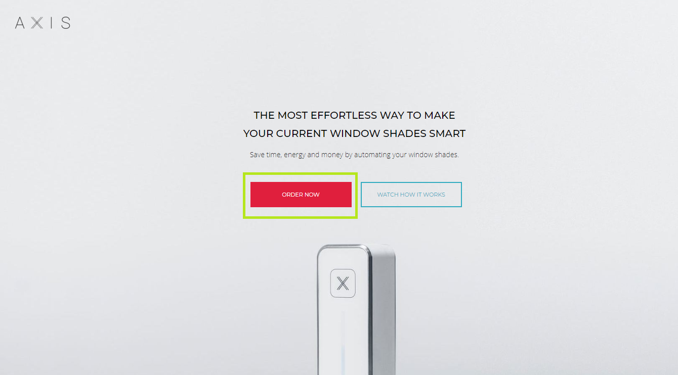 Axis делает умные шторы на окнах и предлагает посетителям своей целевой страницы только один вариант конвертации, чтобы сделать немедленный заказ.