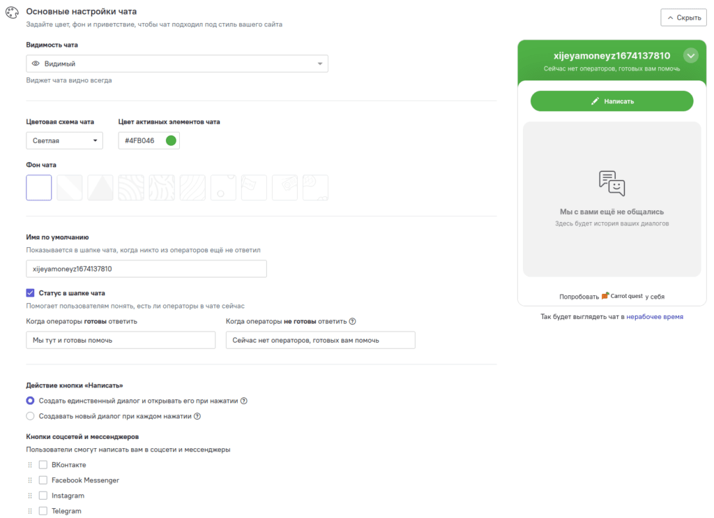 Настройка внешнего вида виджета удобная, понравилась возможность “приправить” дизайн с помощью паттерна через настройку “Фон чата”: