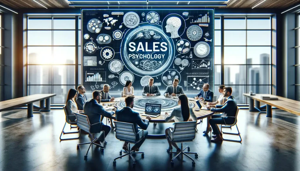 «Динамичная команда участвует в мозговом штурме по психологии продаж».