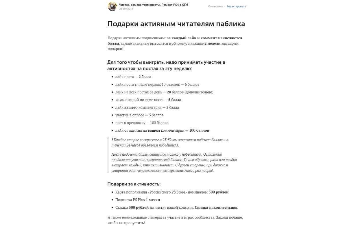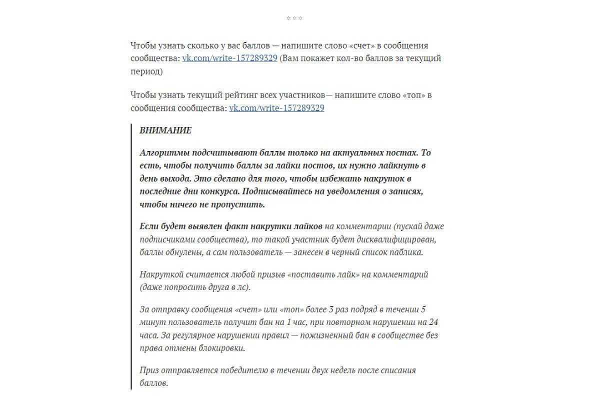 - Чтобы получить баллы, нужно лайкать и комментировать посты в день выхода – такое правило стимулирует чаще заходить в паблик и вырабатывает привычку.
