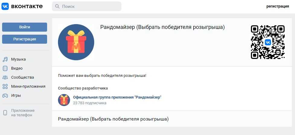 Это приложение внутри социальной сети ВКонтакте. Работает по тому же самому принципу: случайным образом определяет победителя розыгрыша среди репостнувших или лайкнувших пост. Также здесь можно рандомно найти человека из полного списка участников сообщества.