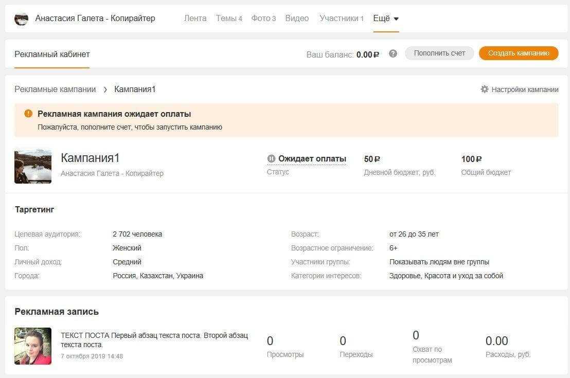Как пополнить счет рекламных кабинетов в Одноклассниках