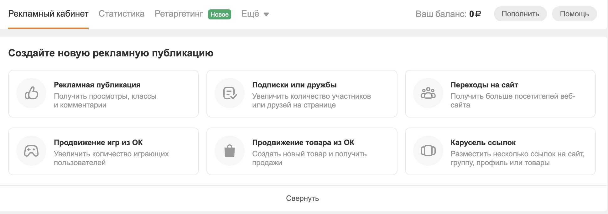 В Рекламной кабинете ОК можно настроить таргетинг для различных целей.