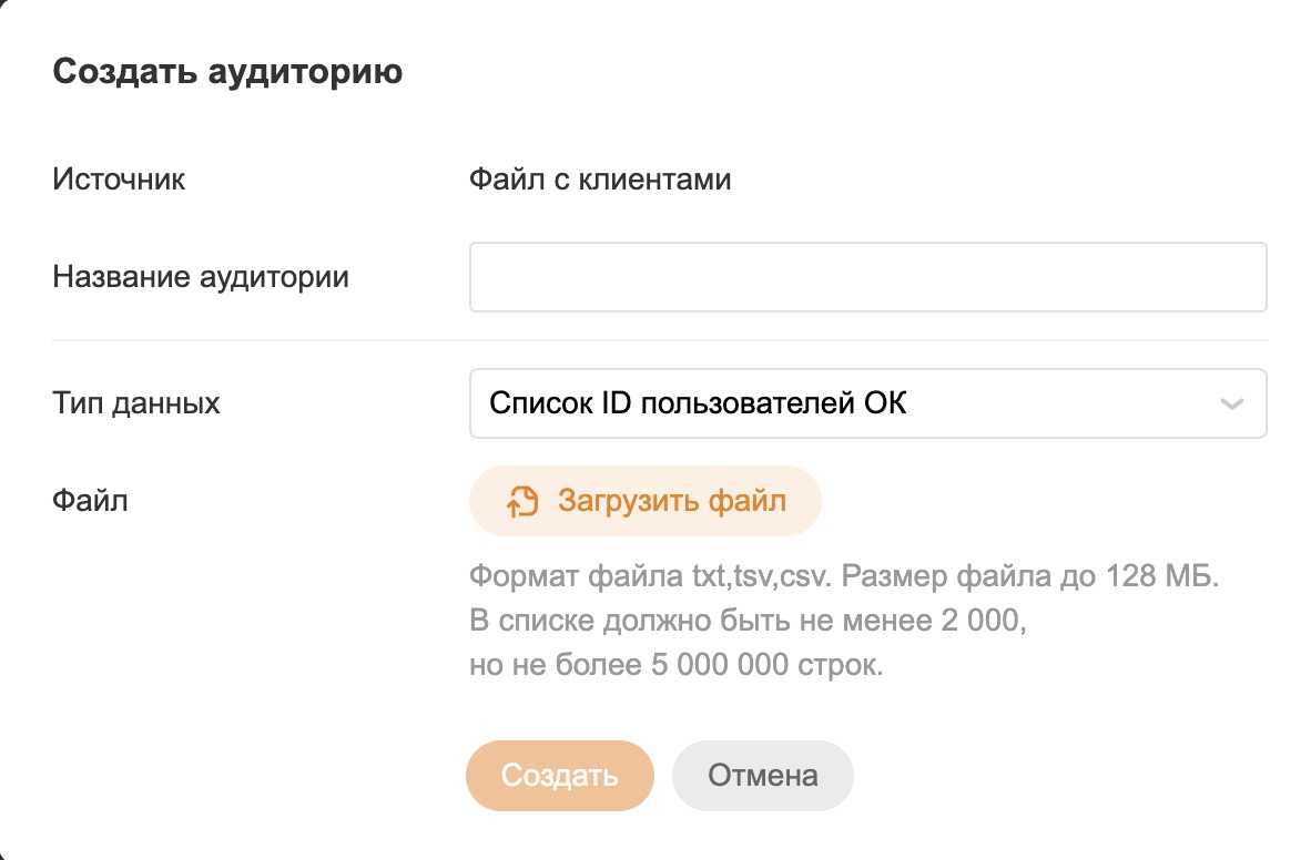 С помощью ретаргетинга можно показывать рекламу конкретным пользователям, которые есть в вашей базе. Для этого в Рекламном кабинете нужно создать аудиторию, загрузив файл с данными (от 2000 до 5 000 000 строк). Создать список пользователей можно с помощью CRM-системы вашего бизнеса или воспользоваться сервисом TargetHunter.