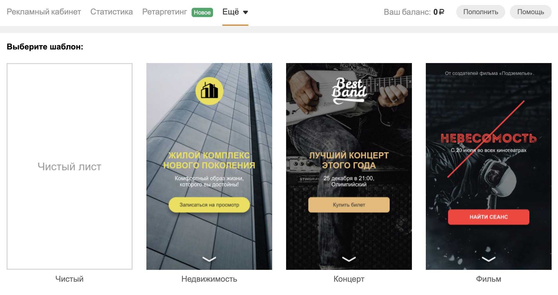 Шаг 2. Вы попадёте в рекламный кабинет, в котором необходимо настроить кампанию. Слева вы увидите поле настроек. Справа — превью вашей рекламы.