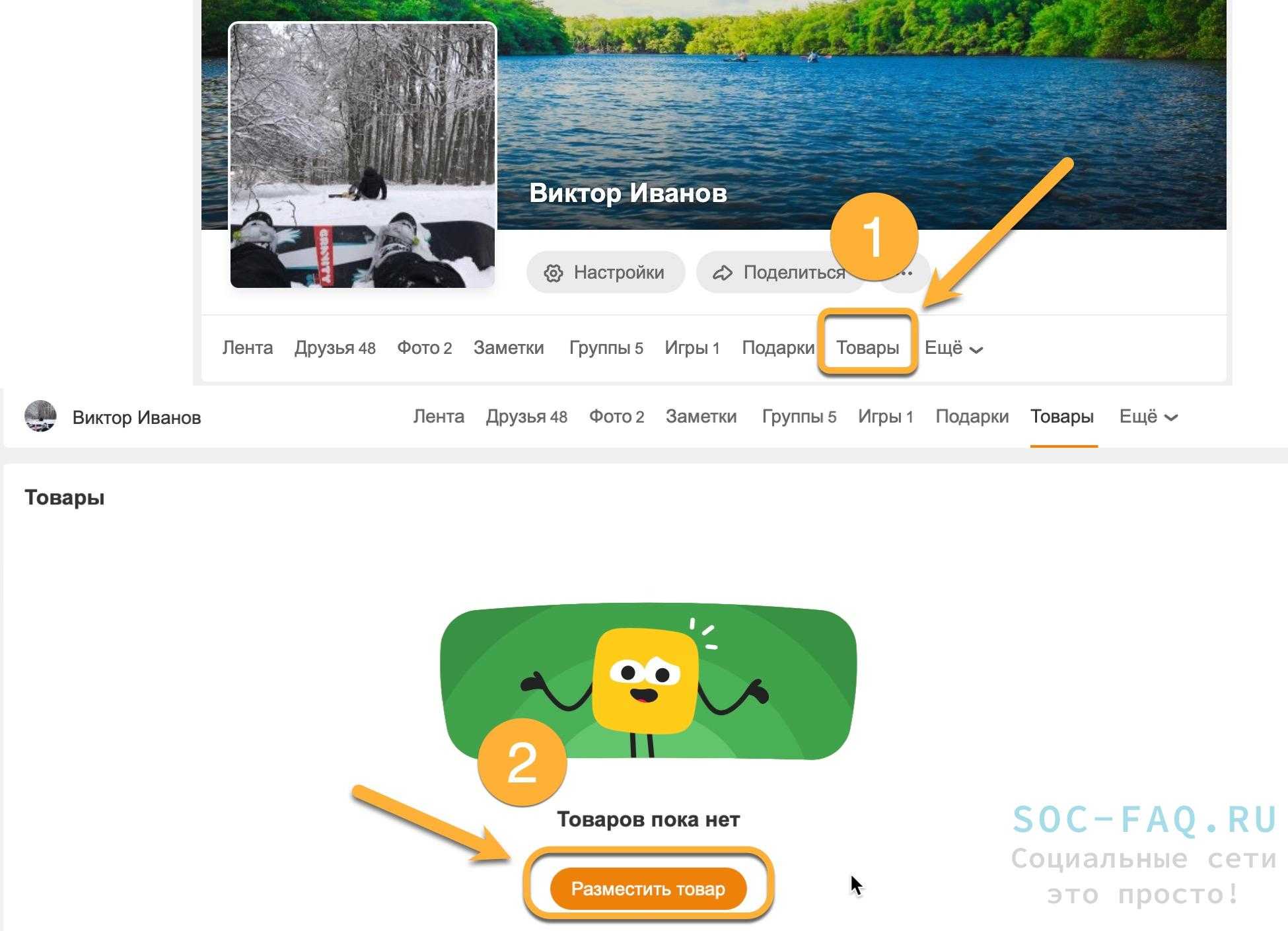 - открывается новая страница, где под аватаром находим вкладку «Товары» и нажимаем на неё;