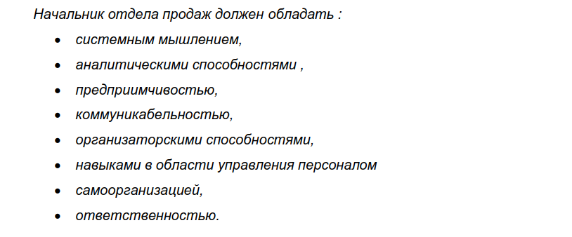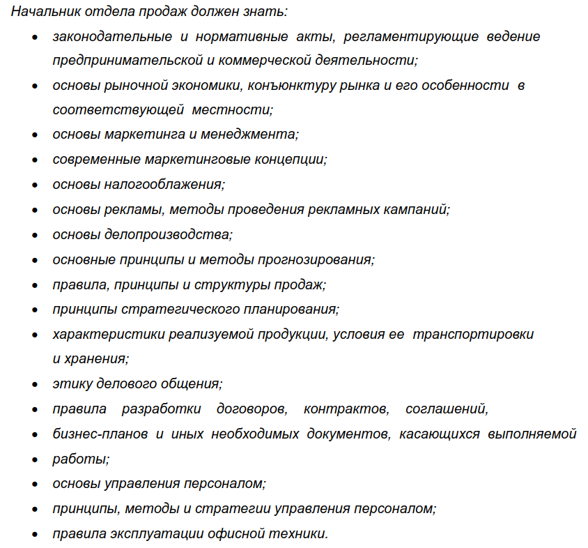 Должностная инструкция руководителя отдела продаж