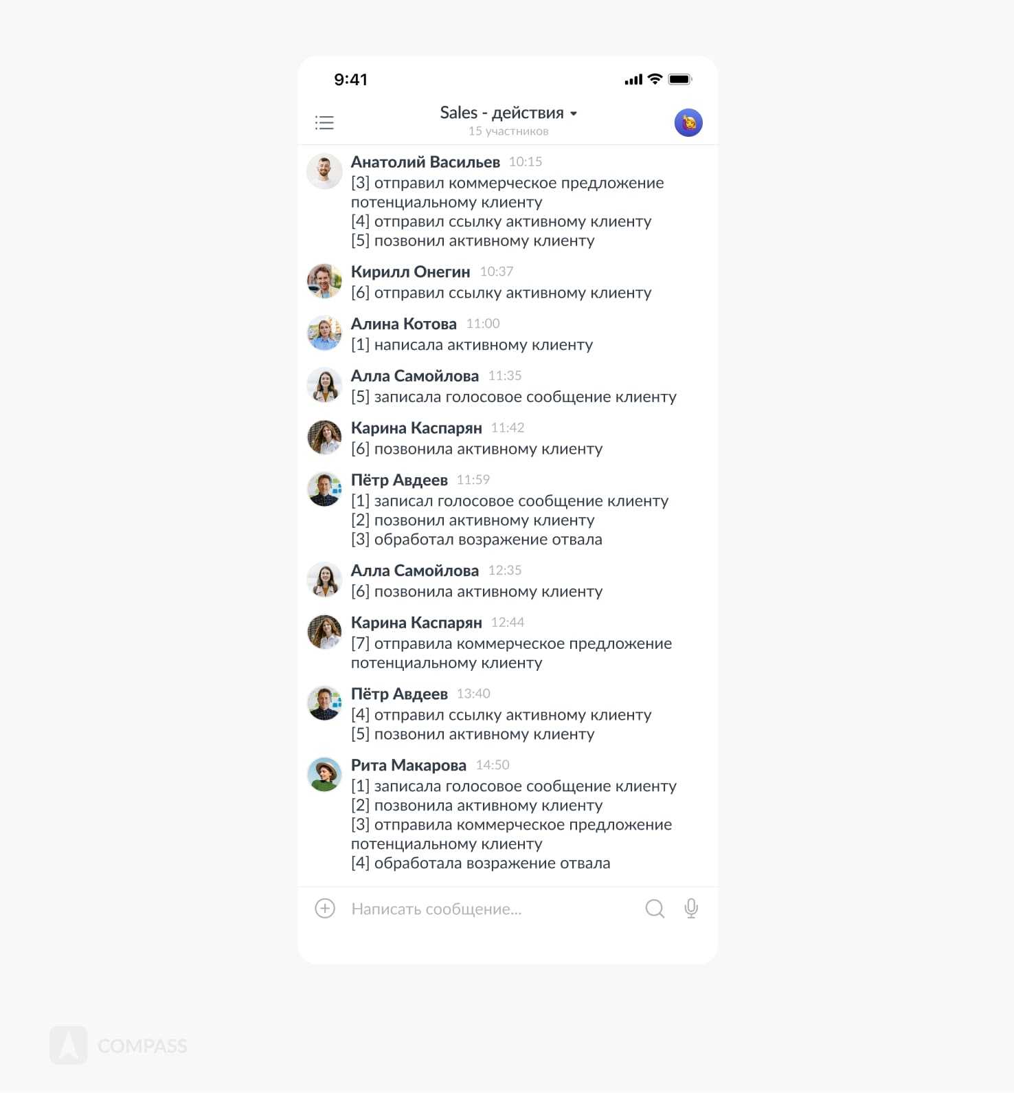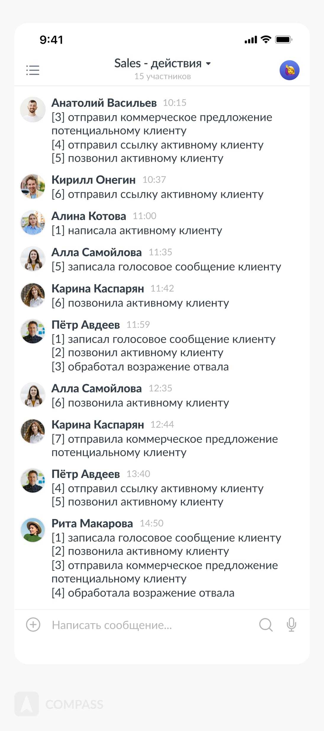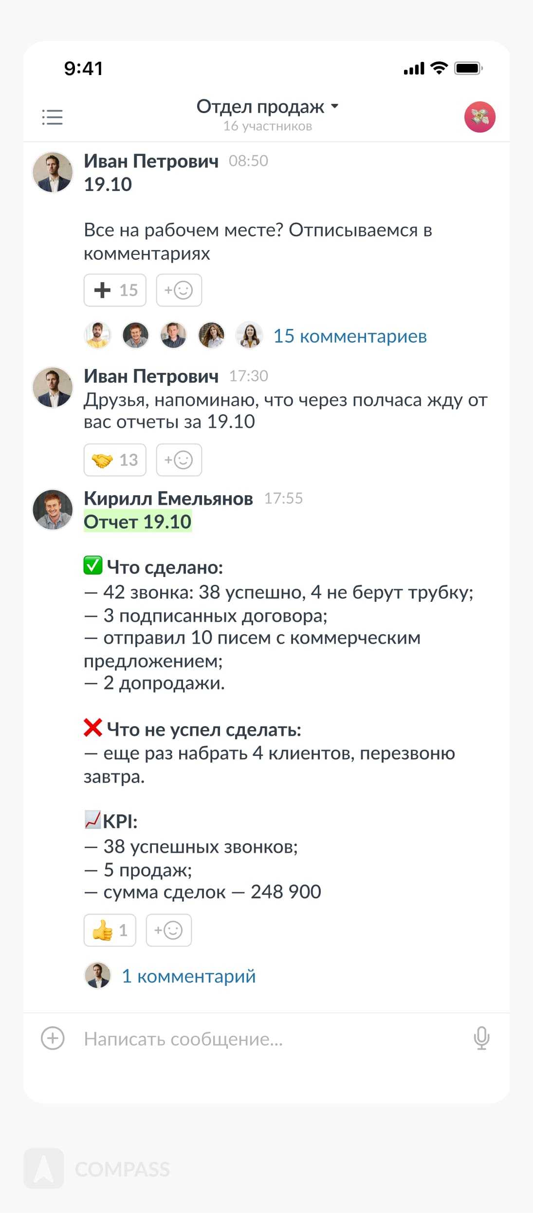 Еще один инструмент для увеличения эффективности отдела продаж – это чат с командой, в котором они пишут о всех действиях в течение дня. При этом сотрудники нумеруют каждый шаг, который приближает их к выполнению плана. К концу дня у каждого менеджера по продажам может накопиться несколько десятков таких sales-действий.
