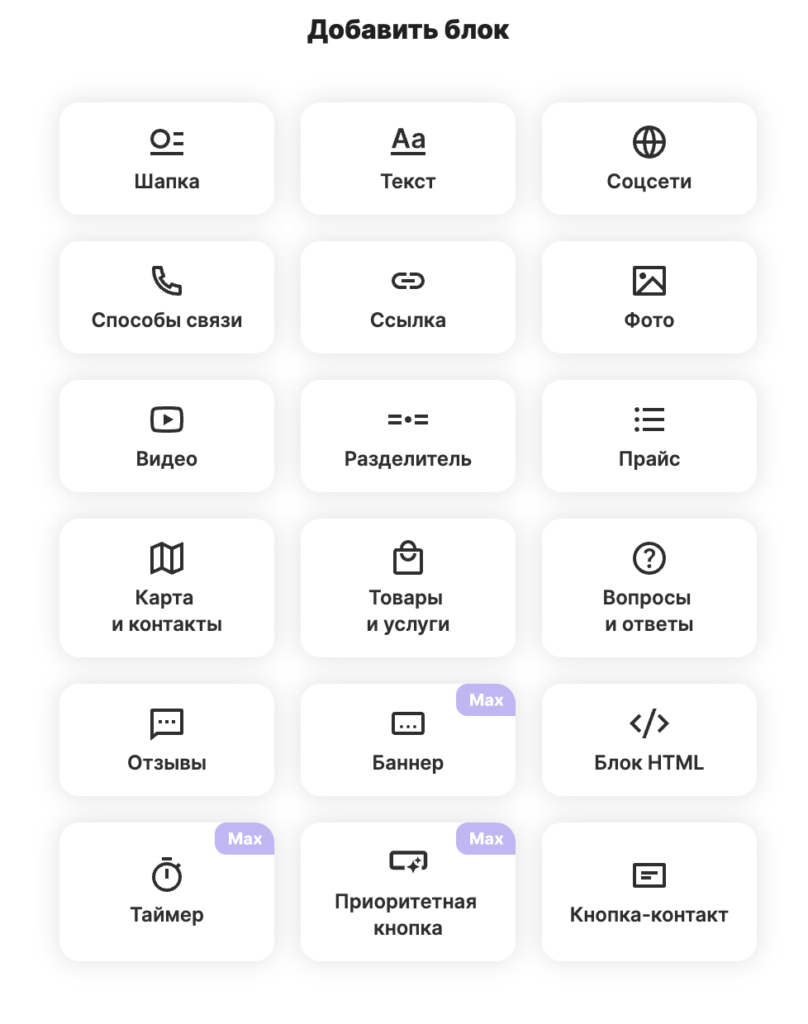 4. Добавьте элементы, интеграция которых важна для вашего будущего мини-сайта.