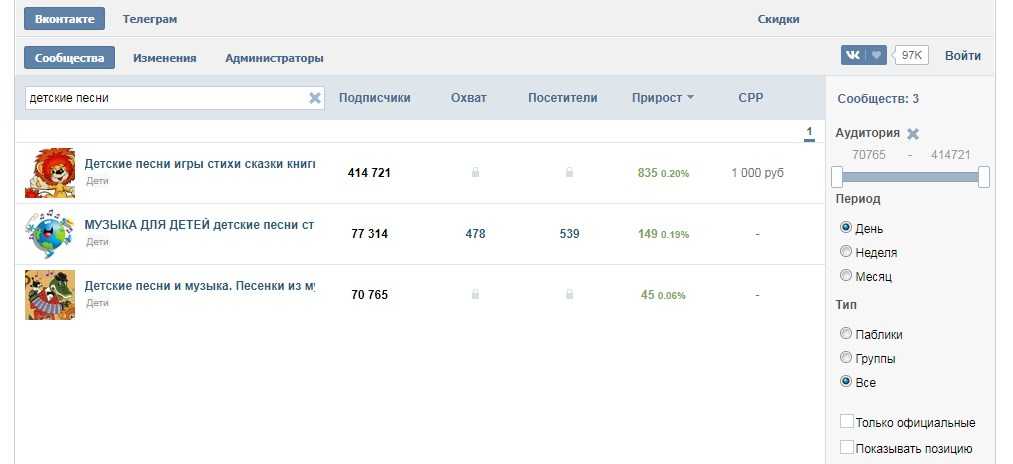 - Можно искать конкурентов только среди официальных сообществ