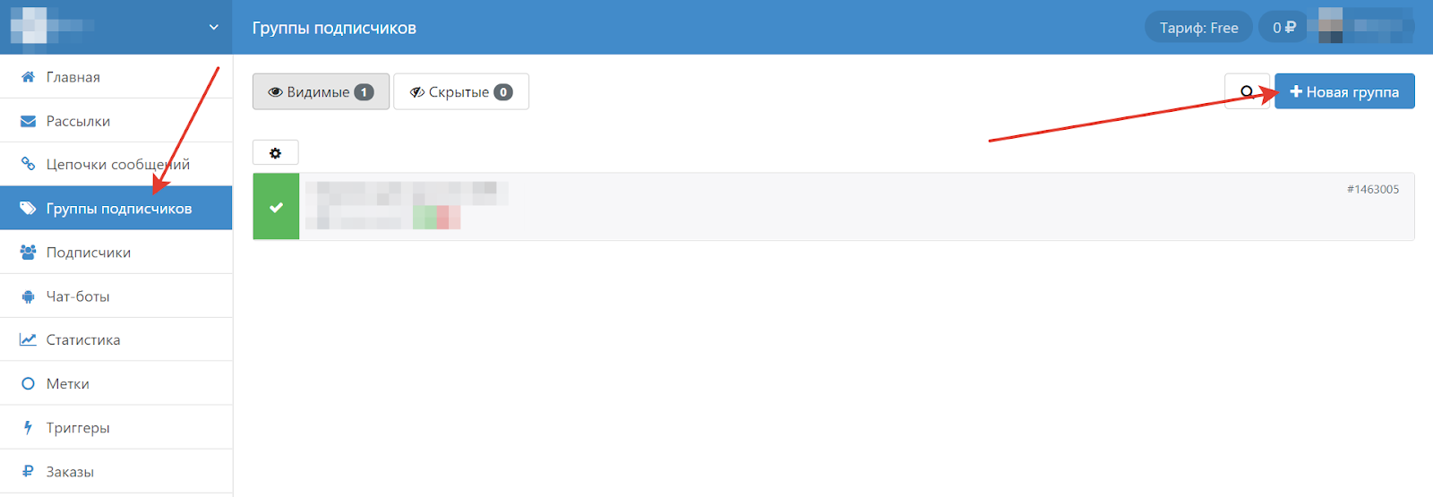 Перейдите в раздел «Группы подписчиков» и создайте группу:
