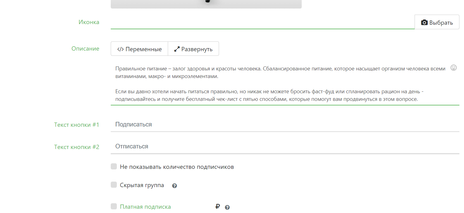 Создание группы подписчиков