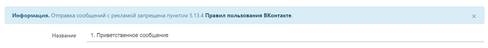 Затем создайте и настройте сообщение. Укажите его название (появится в аккаунте Senler в списке сообщений, пользователи его не увидят):