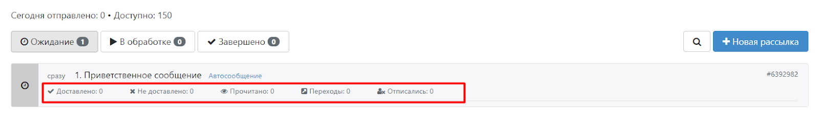 Статистика по сообщению доступна в кабинете Senler: