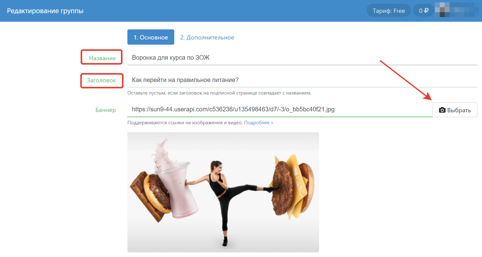 - загрузите баннер (видео или изображение). Также вы можете добавить иконку;