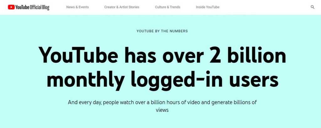Вторым по актуальности сегодня по праву считается Youtube. С ежемесячной посещаемостью, превышающей 2 миллиарда уникальных пользователей, этот видеохостинг позволяет добиваться внушительного роста за счёт привлечения заинтересованной аудитории. Ведь современные пользователи намного охотнее потребляют видео-контент, в сравнении с текстовым.