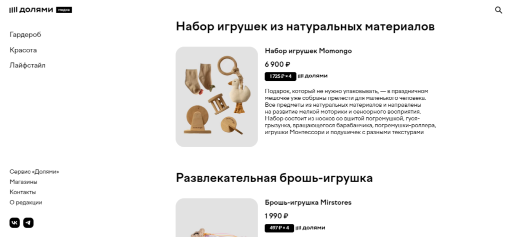- ссылки на статьи оформлены как карточки;