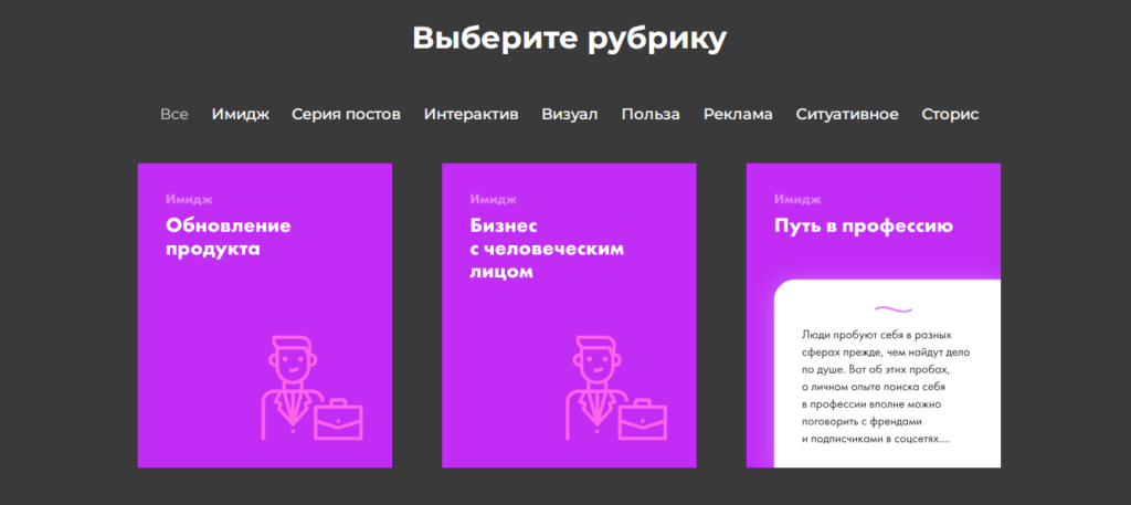 Элементы лендингов в статьях становятся популярнее. Еще такой подход используют при оформлении рубрик. К примеру, для организации идей.