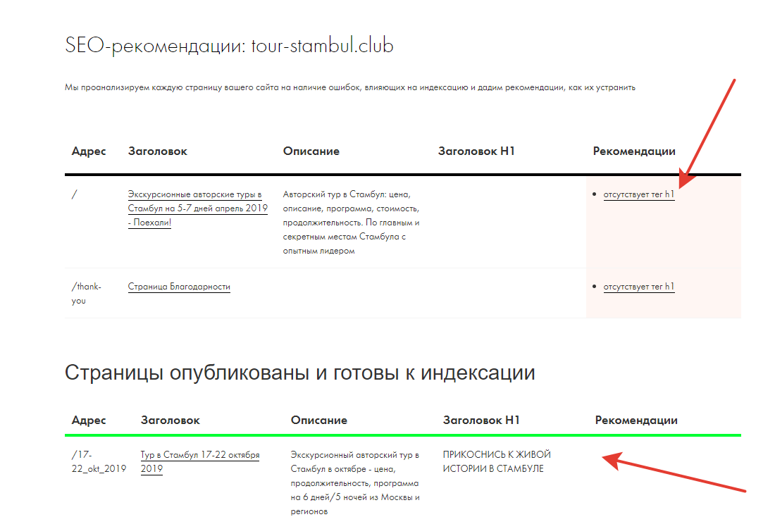 Снова идем в настройки — seo и выбираем посмотреть рекомендации, самые грубые ошибки сервис укажет сам.
