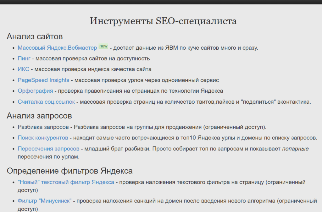 Serpstat, Key Collector, Rush Analytics, СловоЁб, Букварикс, Just Magic, Keys.so. |