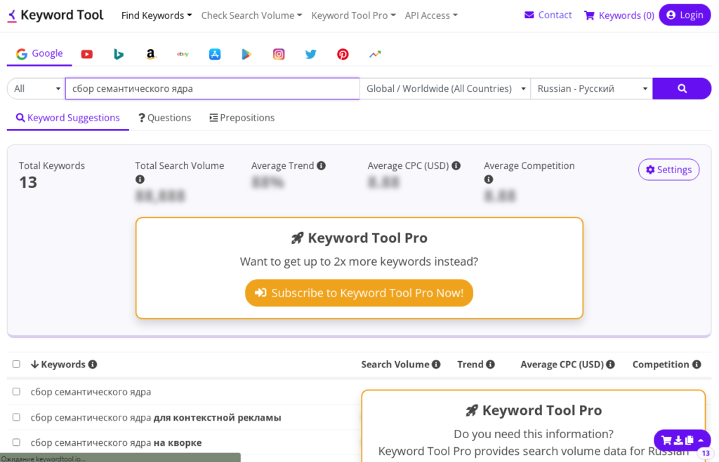 Выбирая сервис для сбора СЯ, отталкивайтесь от стоящих перед вами задач и необходимого функционала — из каких каналов вас интересуют поисковые запросы, учитывает ли инструмент поисковые подсказки, минус-слова по заданной теме, предлагает ли услугу кластеризации, сортировки по регионам и т.д.