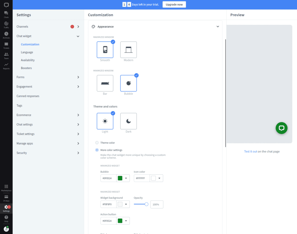 Данный сервис отличается от многих конкурентов тем, что онлайн-чат, созданный на основе Cleversite, очень красивый и функциональный, с минималистическим и адаптивным дизайном. Причем его цвет можно подобрать под дизайн сайта — система при настройке сама предложит вариант цвета кнопки чата.