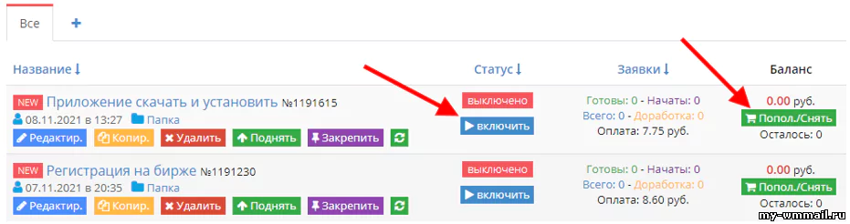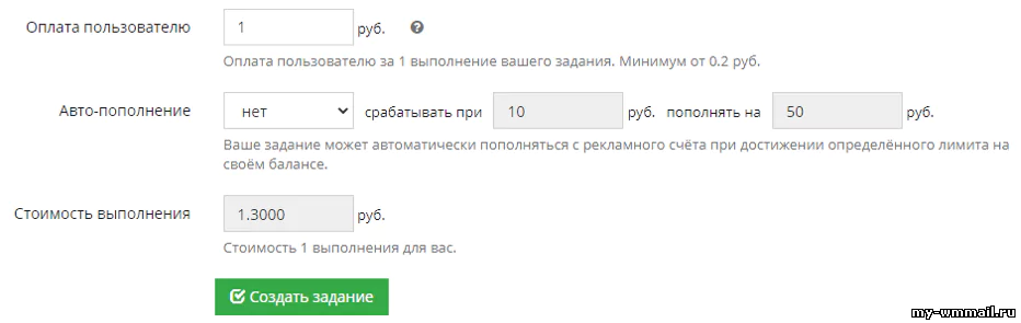 Ставьте оплату в 3-5 рублей, здесь исполнители готовы работать даже за такие деньги. Создав задание, остается пополнить его баланс и включить: