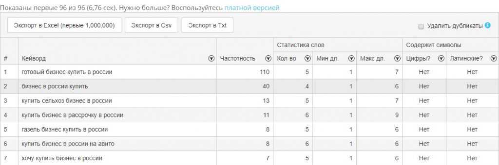Ищем в демо-версии ключевые фразы по запросу «купить бизнес в России»