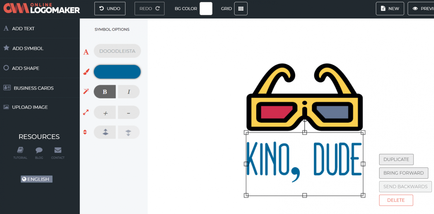 Конструктор без готовых решений, позволяет делать логотип с нуля с помощью комбинирования и изменений клипартов и текста. С кириллицей работать не умеет.