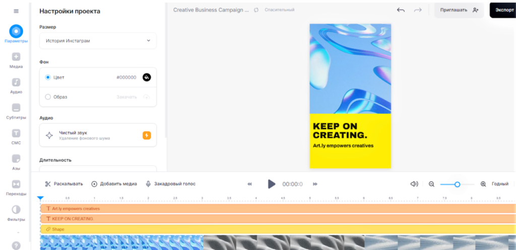 Если у вас нет даже базовых знаний графического редактирования, система быстро сориентирует вас. Внутри сервиса можно пользоваться фото- и видеоредактором, работать с субтитрами и транскрипцией, записывать аудио, видео.