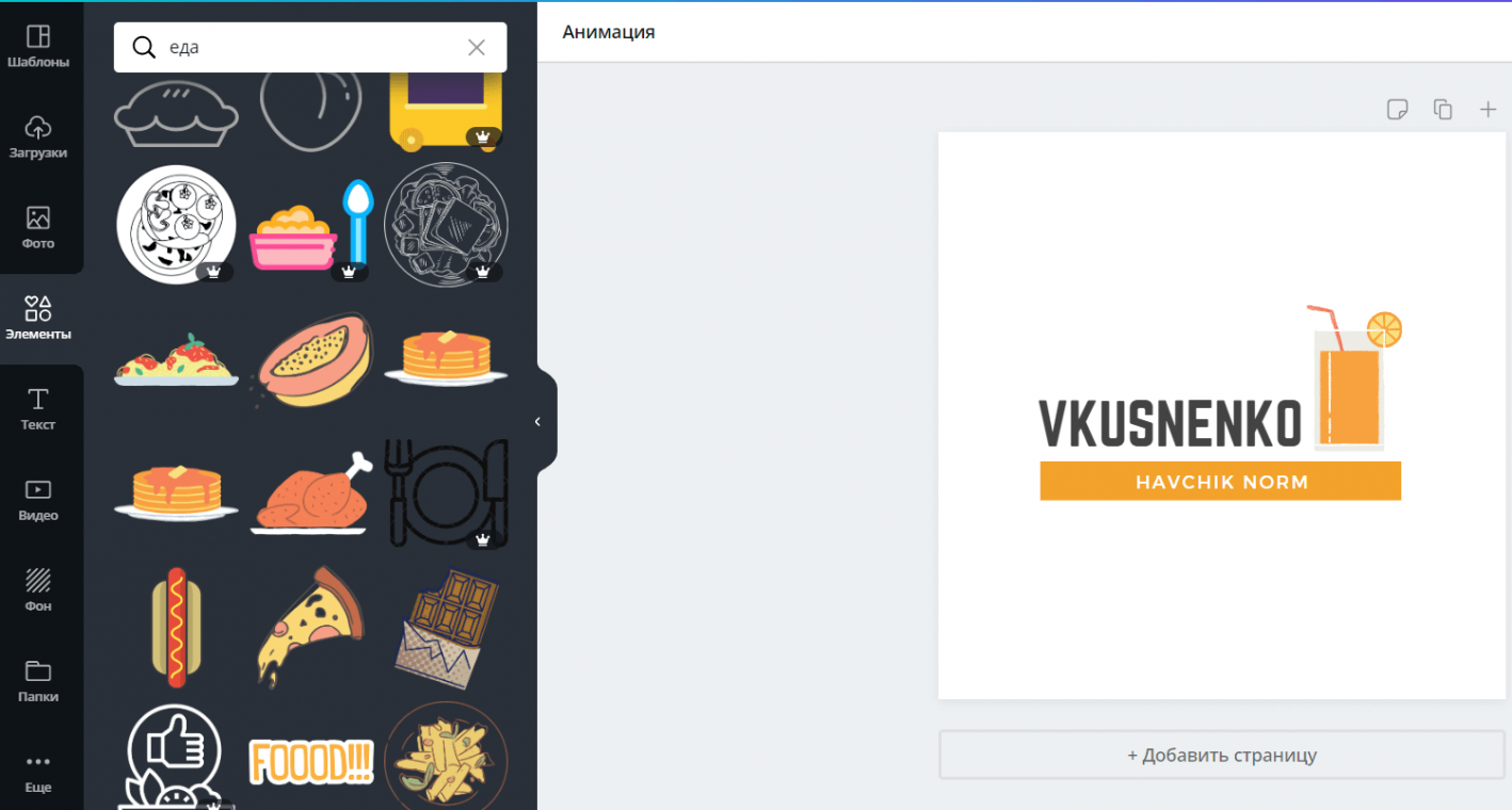 Система предложит разные варианты, которые можно редактировать. В платной версии можно добавить анимацию.