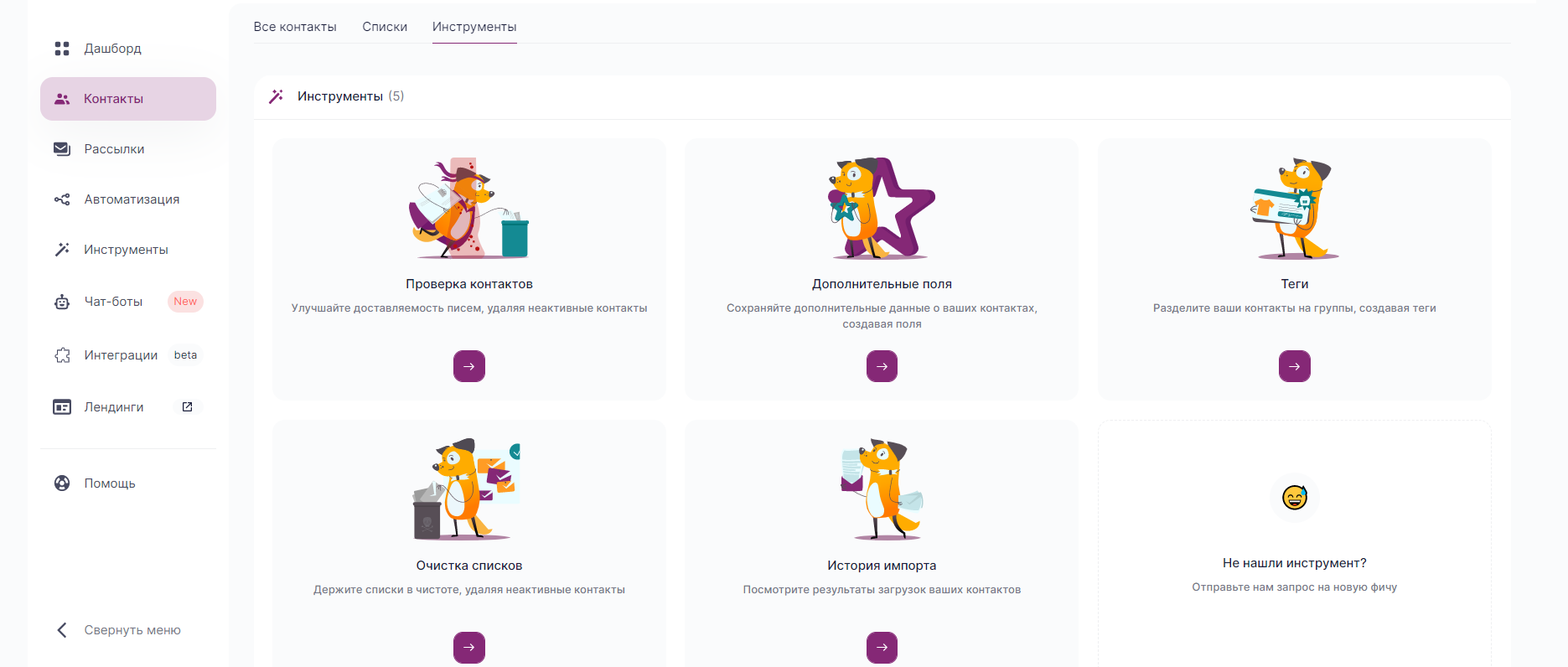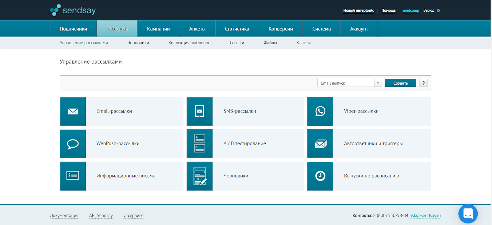Sendsay – это еще один сервис, который позволяет делать комплексный маркетинг не только с помощью рассылок, но и других инструментов.