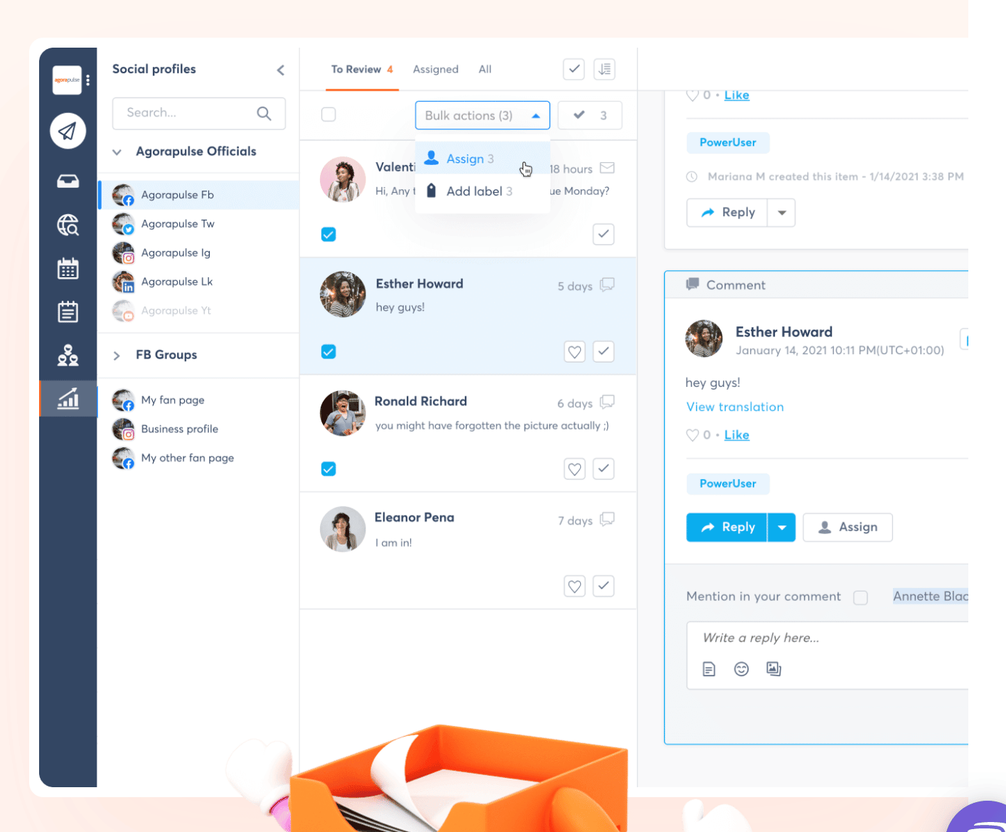 - Monitor engagement on all your social media channels with a unified inbox