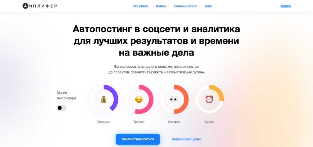 Поддерживает публикации в Facebook, Instagram, Telegram, ВКонтакте, Одноклассниках, Twitter, Tumblr, Pinterest и Google+.