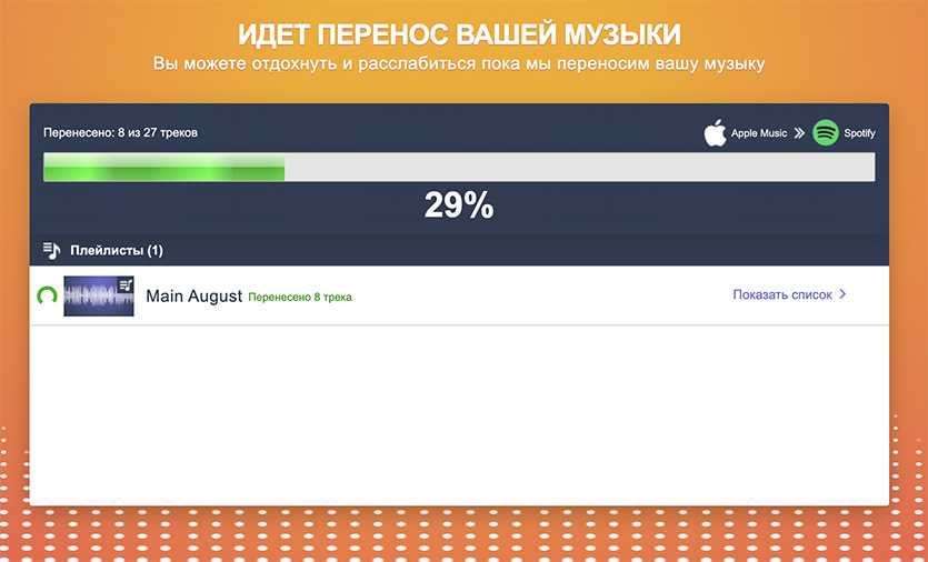 Сервис Tune My Music отлично подойдёт тем, кто хочет перенести свои плейлисты в Spotify с западных музыкальных платформ, в частности из Apple Music.